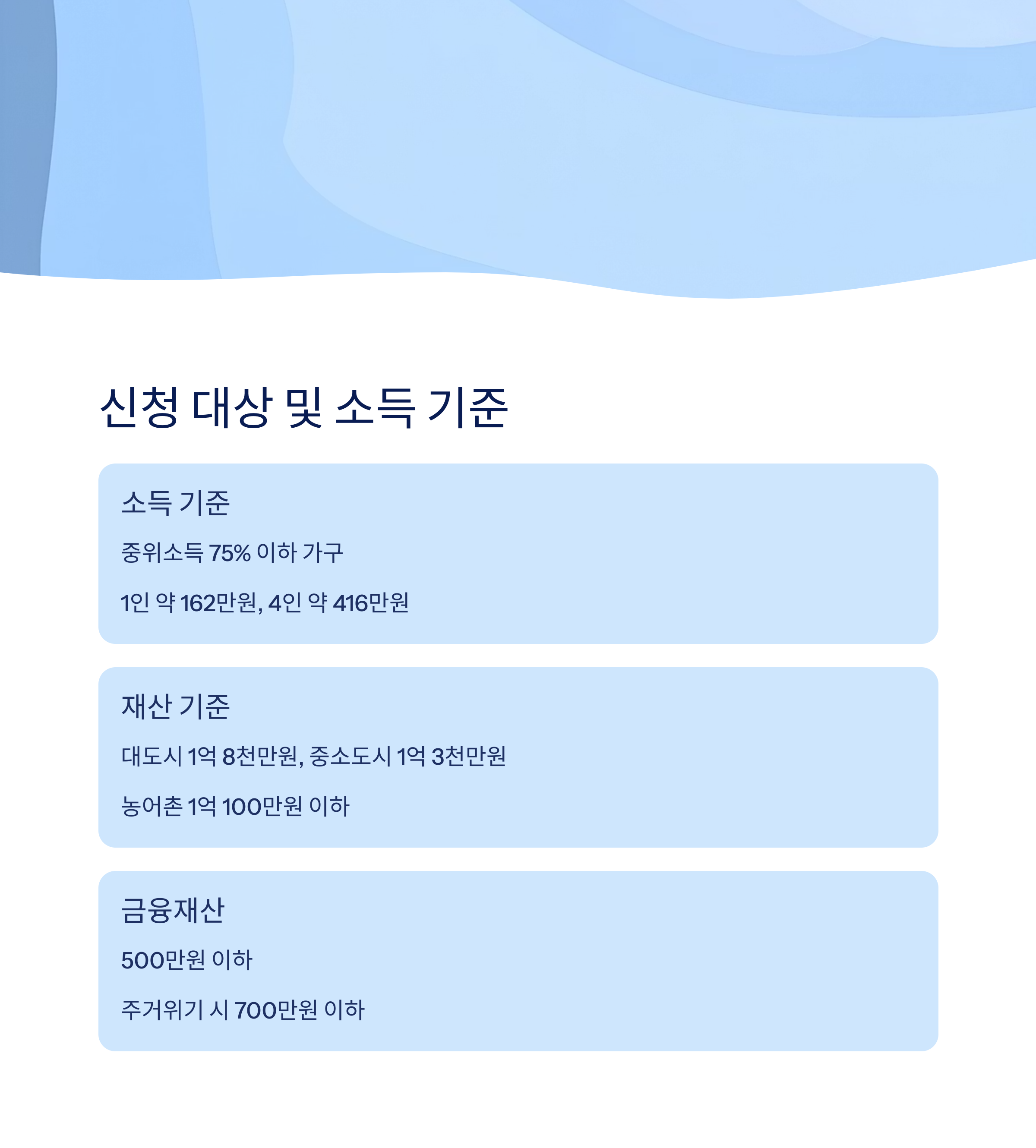 신청 대상 및 소득·재산 기준