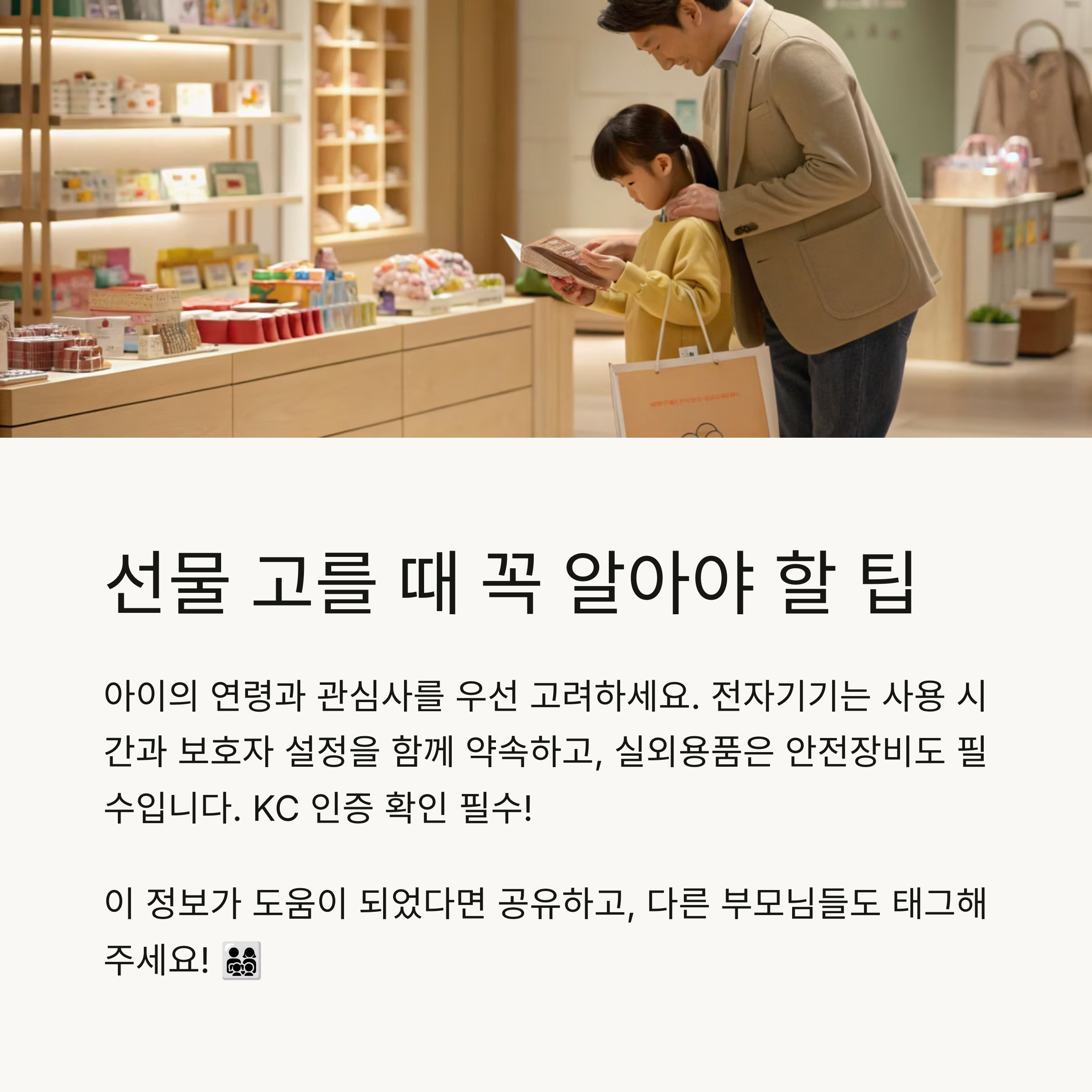 • 아이의 관심사에 맞춘 선물 선택이 우선이에요.